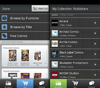 "Graphic.ly è un’app che permette di leggere i fumetti (già disponibile su iOS) che ha appena fatto la sua comparsa sull’Android Market. Oltre ad offrire 2.000 fumetti da 150 editori diversi, Graphic.ly permette anche,per la prima volta su Android, l’accesso ai classici Marvel come Superman, X-Man, Hulk etc. La lettura è resa facile da “Graphic.ly View” che consente ai lettori di immergersi nel fumetto, scena dopo scena e non pagina dopo pagina. L’applicazione è gratuita." (fonte: GIZMODO.IT)Ovviamente c'è uno STORE dove acquistare i migliori titoli in circolazione, ma anche una ricca lista di fumetti GRATIS pronti per essere scaricati e letti. Per quanto abbia avuto modo di vedere sino ad ora, il tutto è esclusivamente in lingua inglese (almeno sino ad ora).